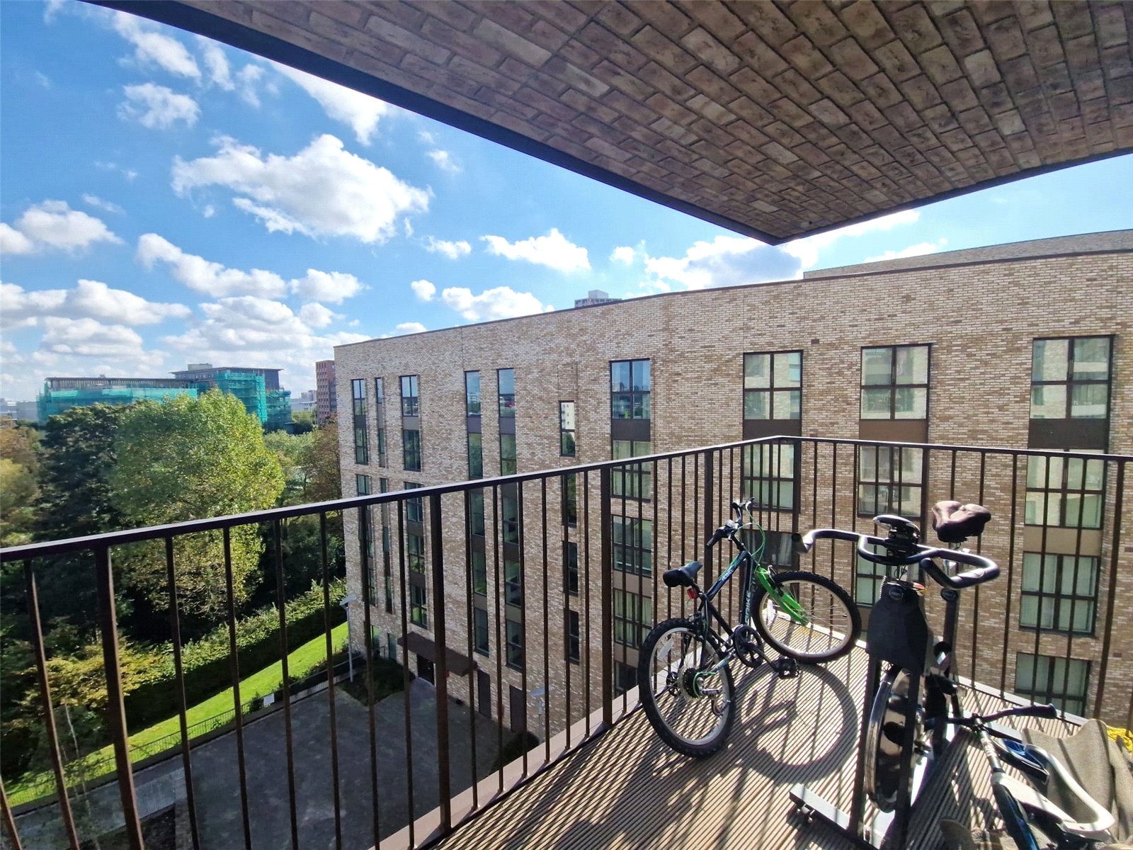 The apartment comprises of entrance hall, two spacious double bedrooms, fully tiled bathroom with bath and overhead shower, an open-plan airy & bright new modern kitchen/living room, doors to the balcony with beautiful panoramic views. Further benefits include: ample storage, residents lift; double glazing; washer/dryer; ventilation system; wooden flooring; under floor heating independently regulated in each room, bike store shed in the car park, communal courtyard with picturesque views of the spacious park/playground, landscaped communal gardens.