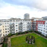 - Patio doors lead directly onto the expansive private terrace, which overlooks the communal gardens