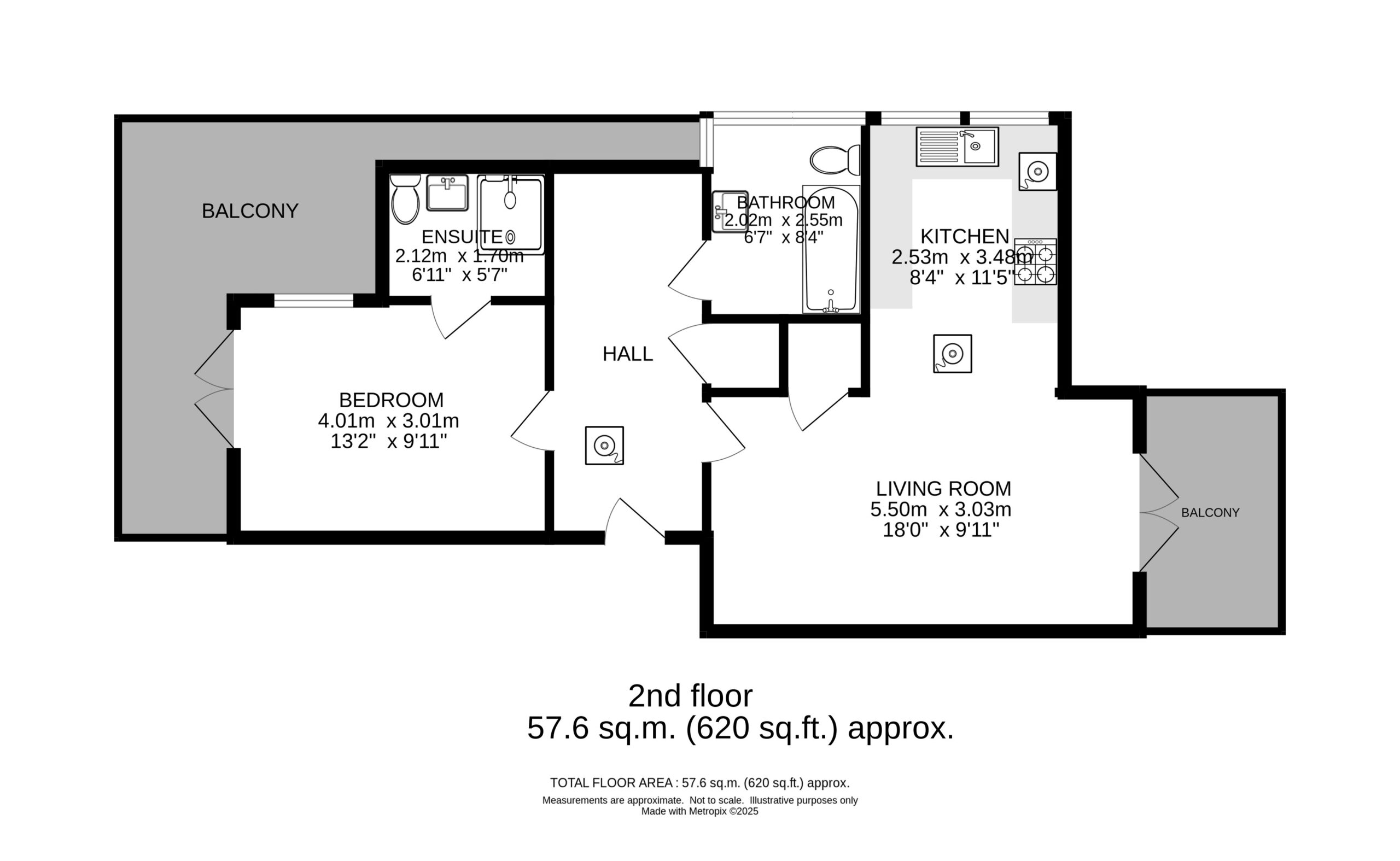 Total Floor Area: Approx. 58 square metres