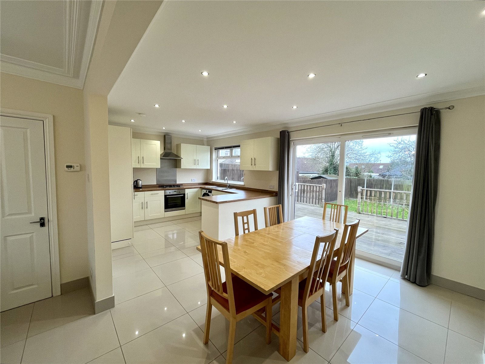 The bright and airy through living and dining room creates a wonderful open living space, complemented by a modern open-plan kitchen fully integrated with a gas hob and oven, fridge/freezer, washing machine, and dishwasher. The ground floor also benefits from underfloor heating, adding comfort and a touch of luxury.