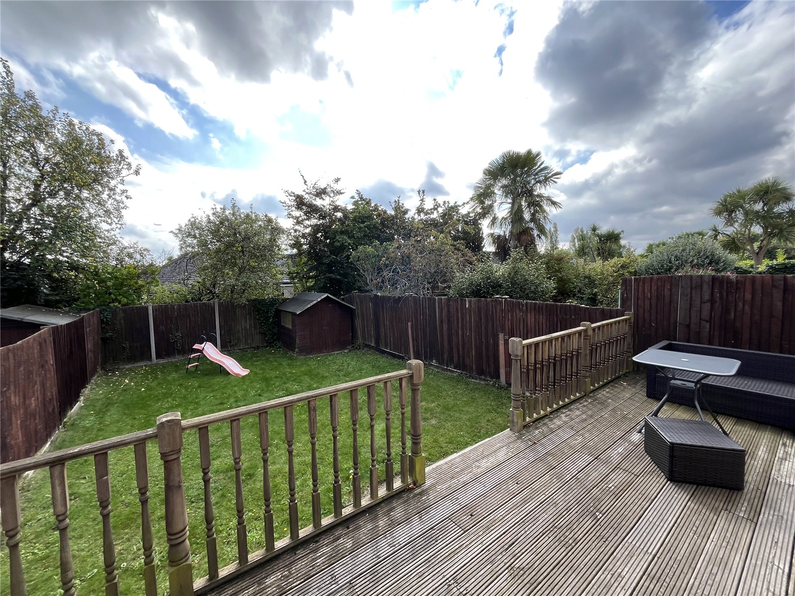 To the rear, the property features a well-maintained private garden with decking, ideal for outdoor dining and relaxation. The forecourt provides off-street parking for up to two cars.