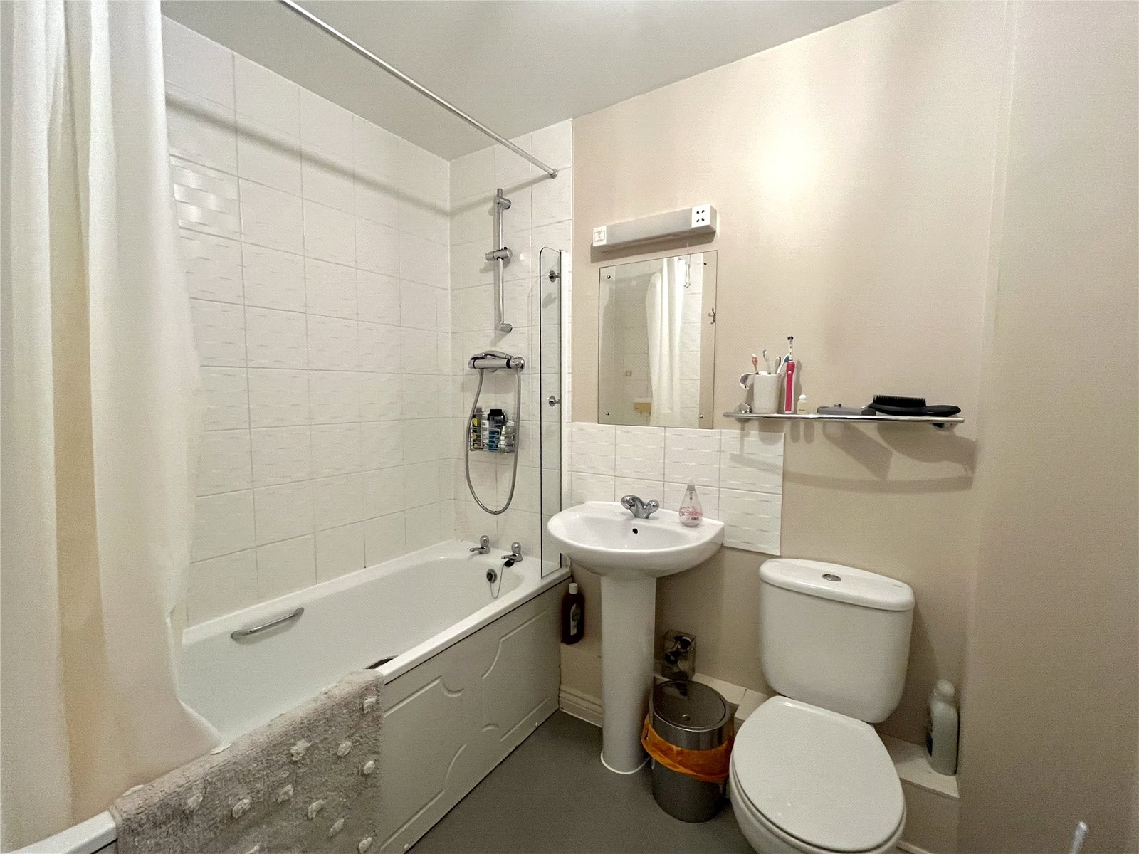 - Tiled Bathroom with bath and shower