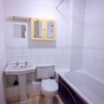Bathroom: 3-piece Victorian style bathroom suite including panelled bath with shower mixer taps, partly tiled walls, fully tiled over bath, low level WC, pedestal wash hand basin, radiator, vinyl flooring, extractor fan.