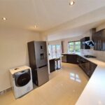The house boasts a large, modern, fully fitted kitchen with integrated appliances and cabinets. It seamlessly flows into the rear lounge, creating an ideal open-plan living space perfect for family gatherings and entertaining. The front reception room is a versatile space that can also serve as a fourth bedroom if needed.